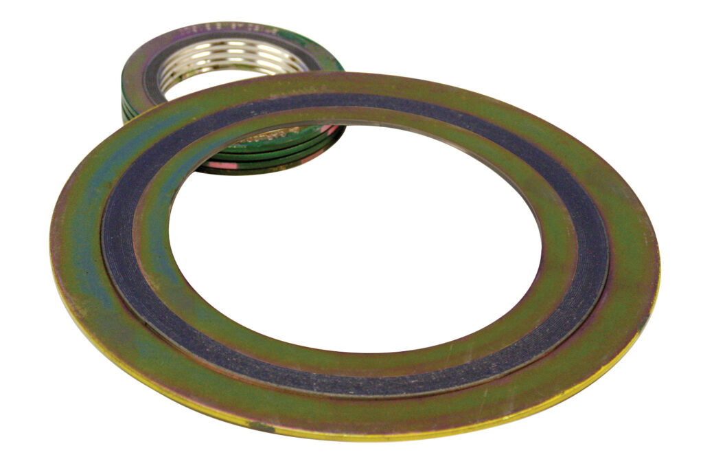 Designed for elevated vacuum pressures and temperatures, this gasket is made as the WR style for which an internal metal ring has been added. This ring fills the space between the flanges, avoiding turbulence in the flow of the fluid or as a protection against corrosion or erosion. It is also used as a compression limit when the seating stress is greater than 30 000 psi (210 Mpa).