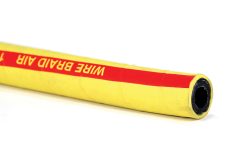 Tube de caoutchouc synthétique recouvert de caoutchouc jaune avec rayure rouge, et renforci de multiples fils d'acier.